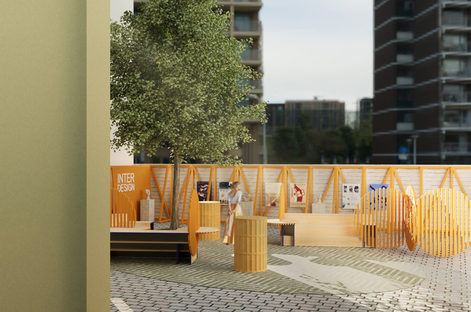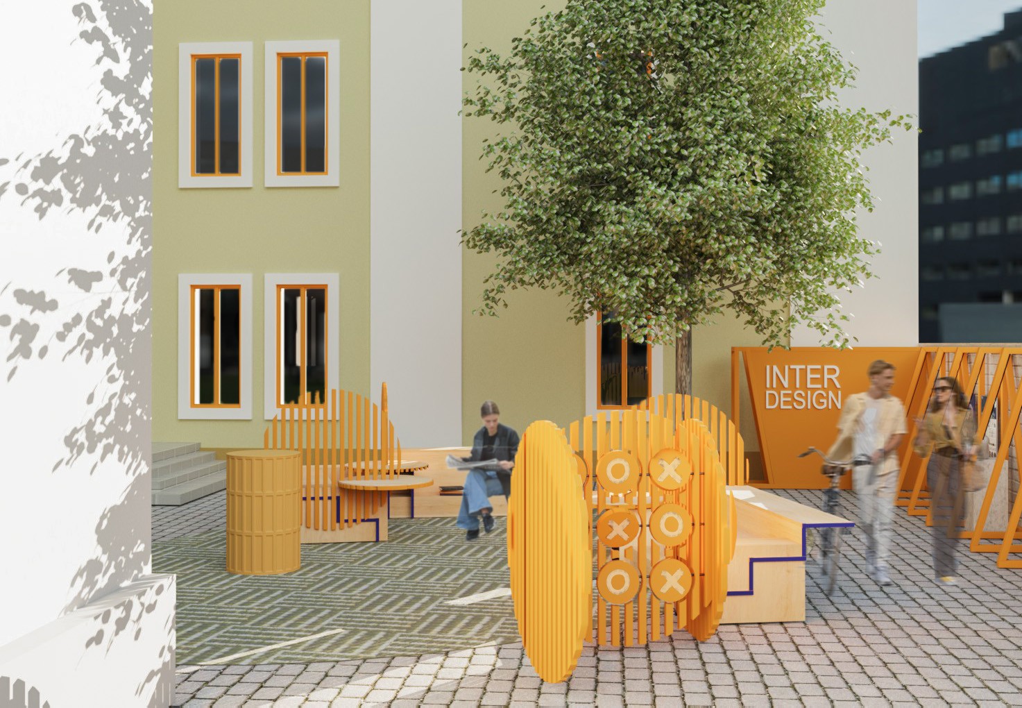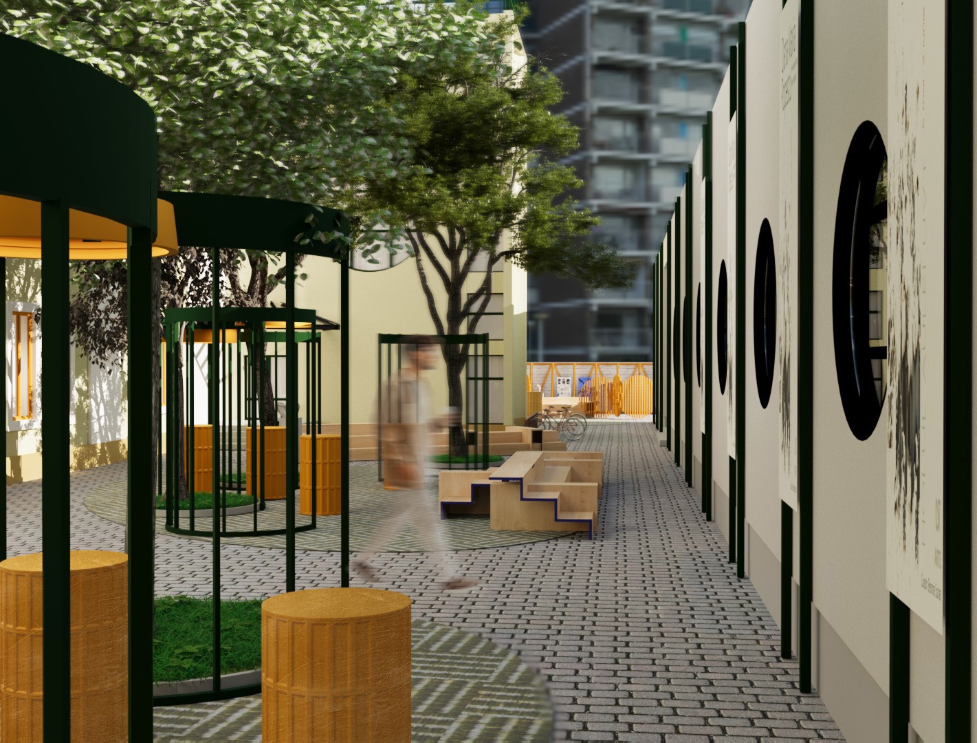 RE:SET is a project focused on reconfiguring the exterior space of the Faculty of Arts and Design, inspired by the principles of the New European Bauhaus — sustainability, aesthetics and inclusion. The intervention aims to transform the courtyard into a dynamic environment that combines study areas, social spaces and structures dedicated to the exhibition of student work. Through modular furniture, interactive elements and lightweight metal structures, the project creates a friendly and accessible atmosphere that encourages collaboration, dialogue and artistic activity.